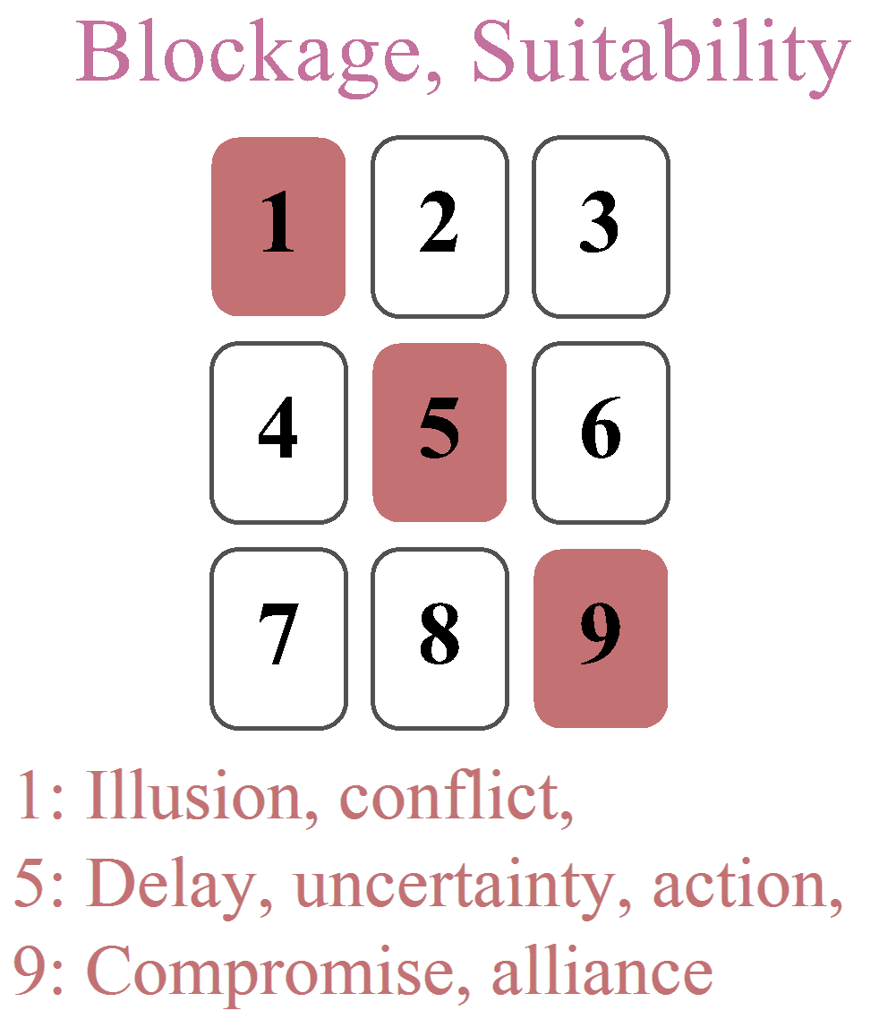 The square formed by the four corners (1, 3, 7, 9) represents the forces that support or block the development of the situation: