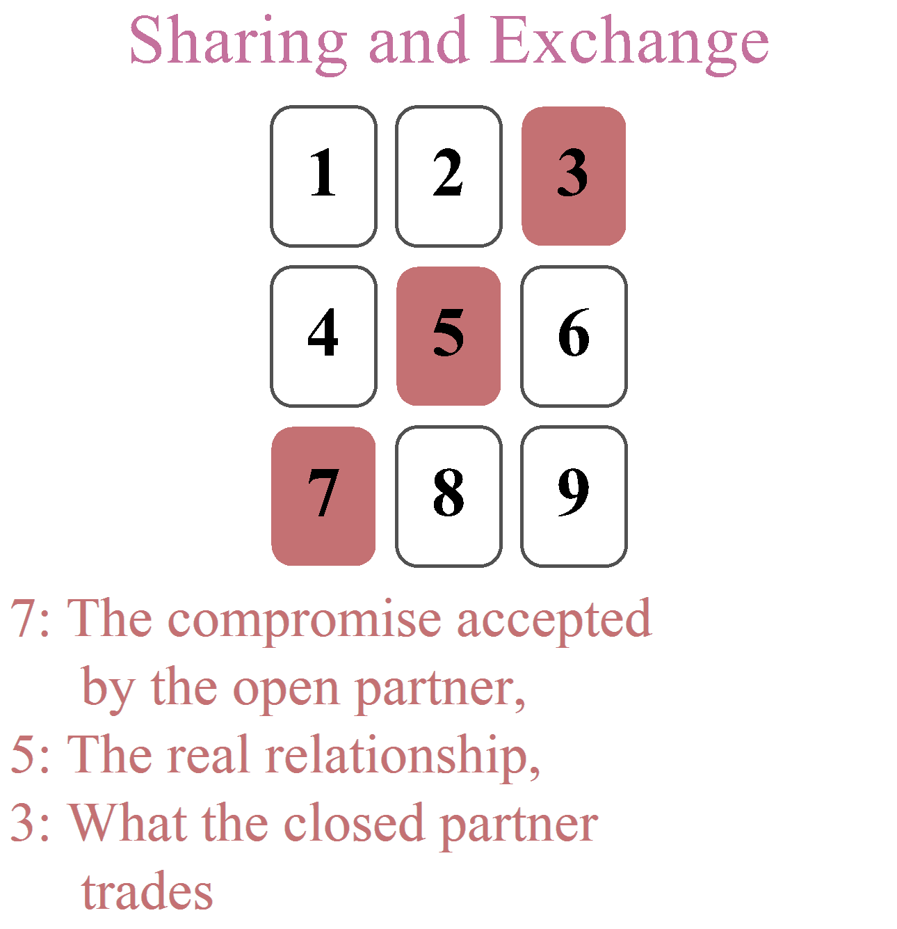 The querent is not automatically in position 7. They may be in position 3 because, for example, they wish to end the relationship but don’t know how to, or they are simply wondering if they should continue the relationship, while their partner isn’t (yet) questioning it.