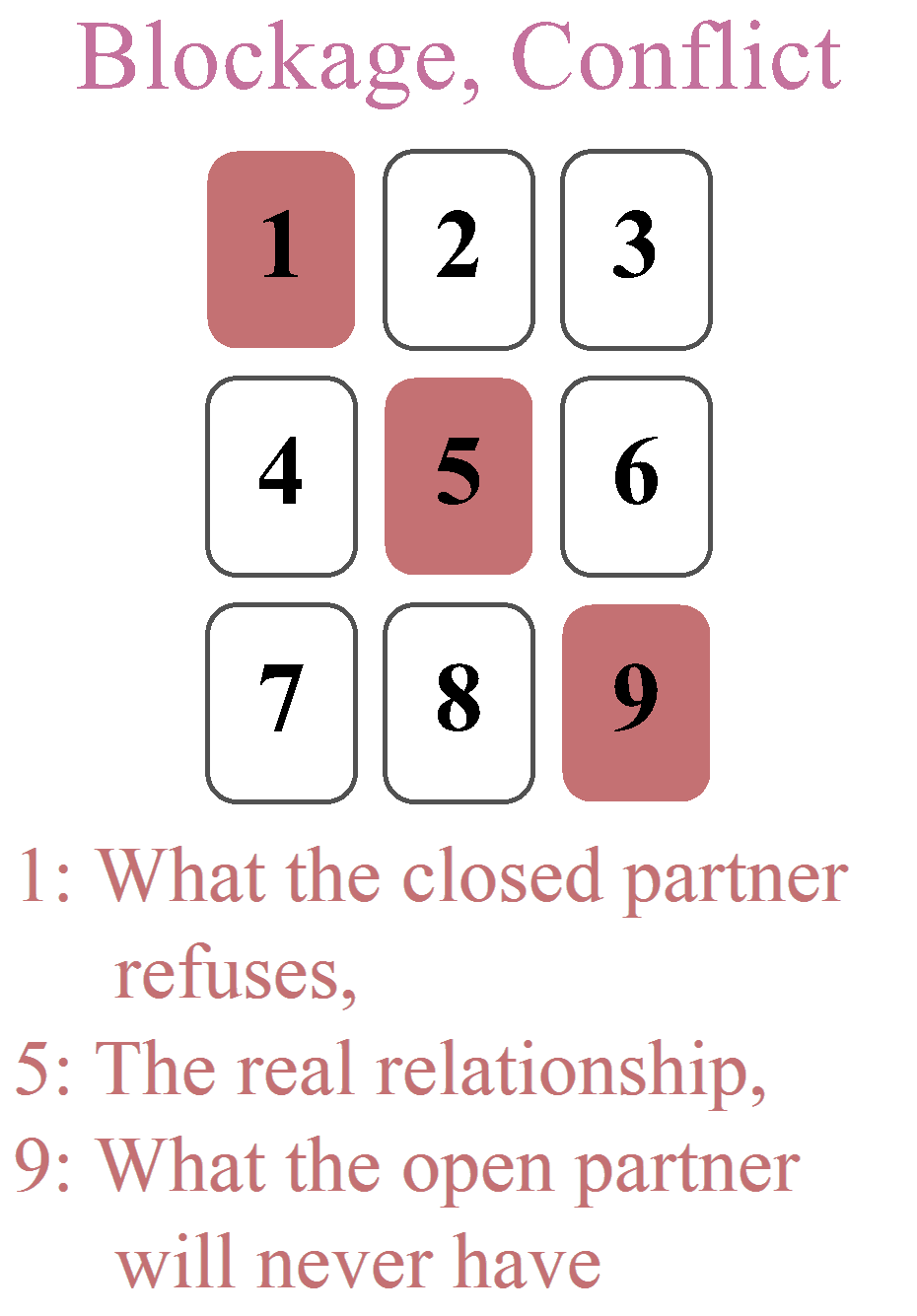 This position identifies the explicit or implicit barriers or refusals of the closed partner.