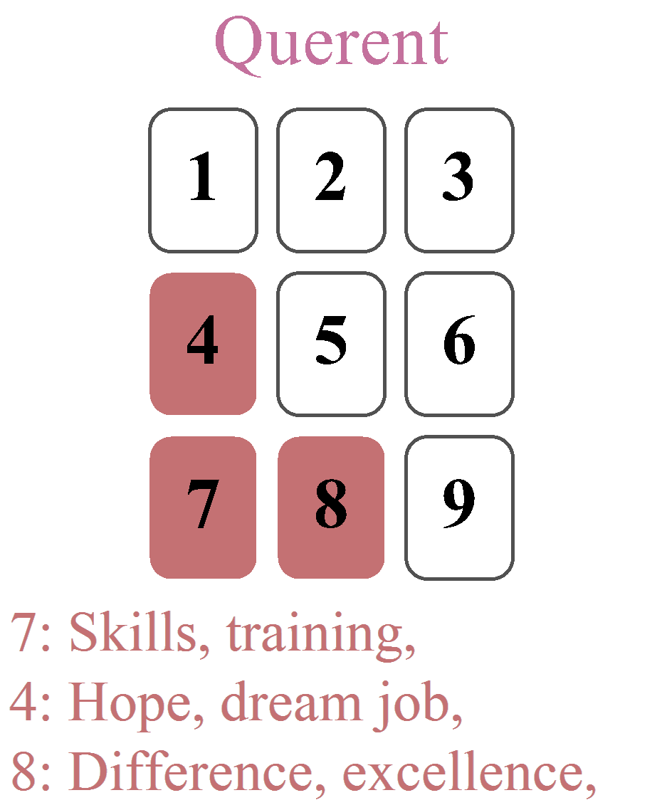 For a more nuanced reading of the 9-card square, we will explore the use of two Significators based on the question asked. In this method, the spread is tailored for a specific domain (love or work) by placing the Significators in strategic positions to highlight the interactions between the querent and their goal.