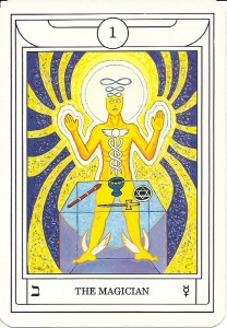 Cette gestuelle prétend montrer le Magicien "reliant le Ciel et la Terre" ou "canalisant les énergies cosmiques". Elle s'inspire des postures rituelles des sociétés secrètes du XIXe siècle, mais n'a aucun rapport avec l'iconographie historique du bateleur médiéval.