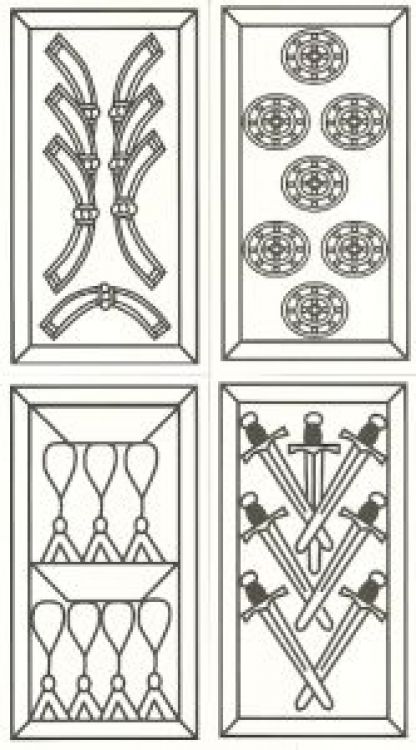 Nous connaissons la structure des premiers jeux de cartes européens uniquement par des sources écrites. Le carton étant une matière très fragile et périssable, il ne reste pratiquement aucune carte des premiers jeux européens. Cependant l'historien Simon Wintle a enquêté sur des feuilles de cartes non découpées du XVe siècle, utilisées pour raidir les couvertures d'un livre. La découverte a été faite quand les conservateurs des musées de Barcelone ont voulu restaurer ce livre. Ces feuilles peuvent expliquer comment les cartes mamelouk ont vu leur design modifié pour s'adapter au goût des européens. Ainsi les cimeterres sont devenus des épées droites. Les bâtons de polo, inconnus en Europe, se sont transformés en gourdins ou matraques. Alors que les deniers et les coupes sont restées relativement semblables.